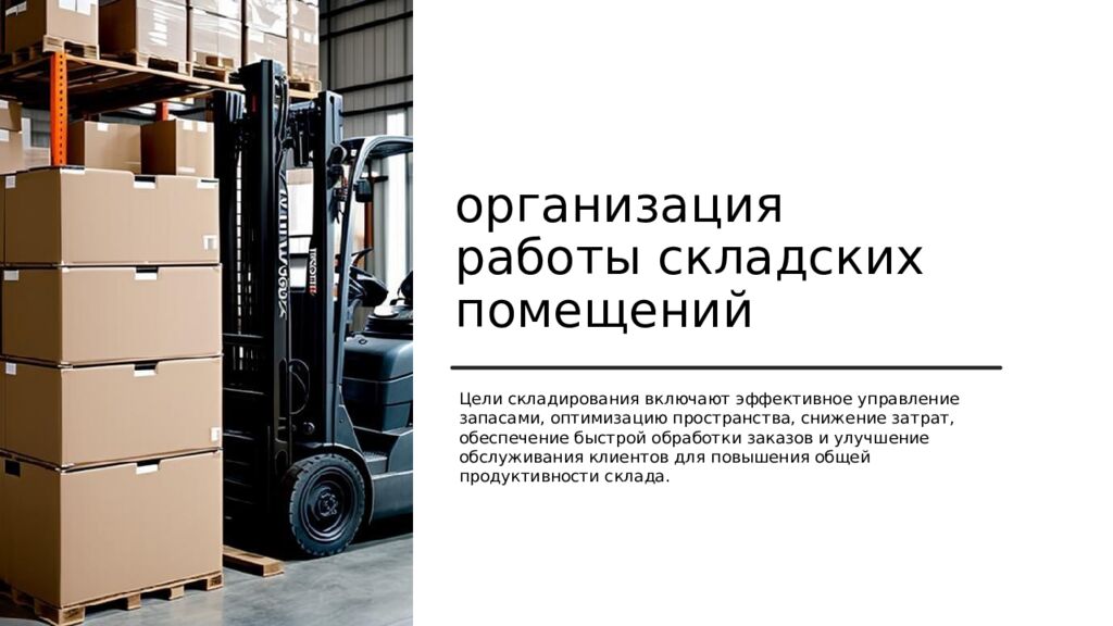 Цели складирования включают эффективное управление запасами, оптимизацию пространства, снижение затрат, обеспечение быстрой обработки заказов и улучшение обслуживания клиентов для повышения общей продуктивности склада.