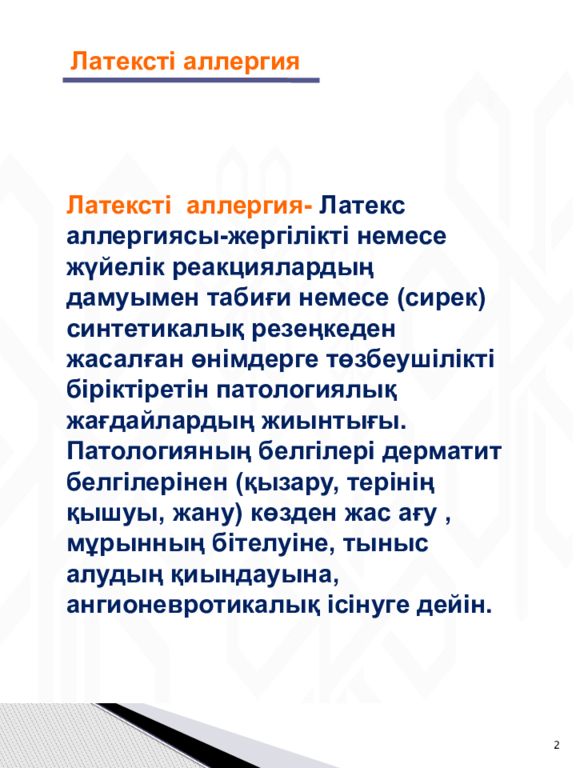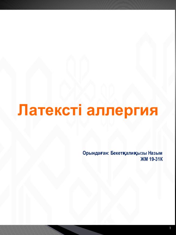 Латексті аллергия 1 Орындаған: Бекетқалиқызы Назым ЖМ 19-31К