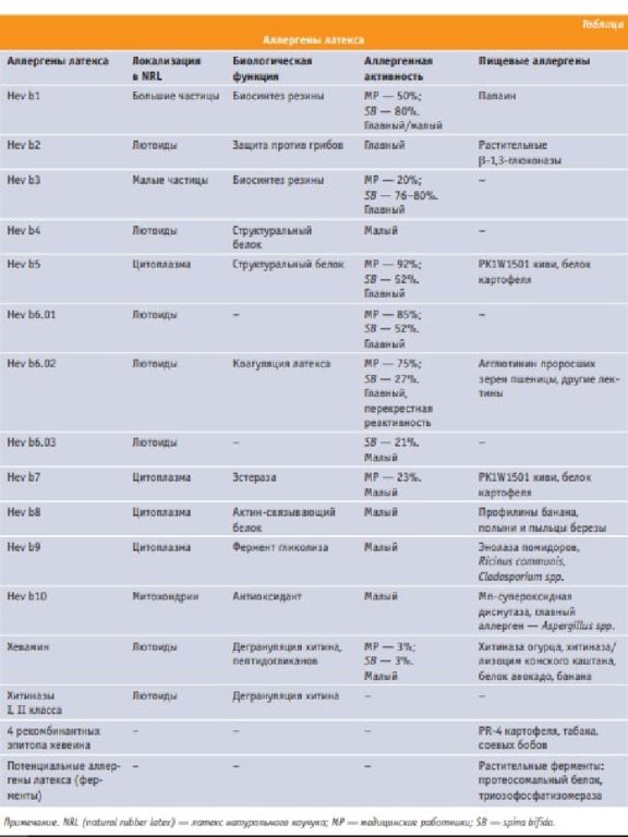 Латексты аллергияның тағамға (банан, киви, авокадо, каштан, папайя, шабдалы, қауын, картоп), сондай-ақ шөптер мен ағаштардың тозаңына сезімталдықпен үйлесуі "жеміс-латекс синдромы" деп аталды. Бұл синдром арнайы латекс аллергендері мен тамақ/тозаң аллергендерінің антигендік қауымдастығына байланысты. «Жеміс – латекс синдромы» 7
