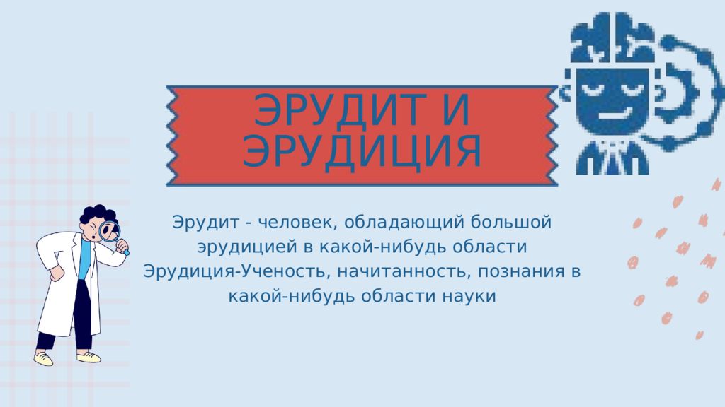 ЭРУДИТ И ЭРУДИЦИЯ Эрудит - человек, обладающий большой эрудицией в какой-нибудь области Эрудиция-Ученость, начитанность, познания в какой-нибудь области науки