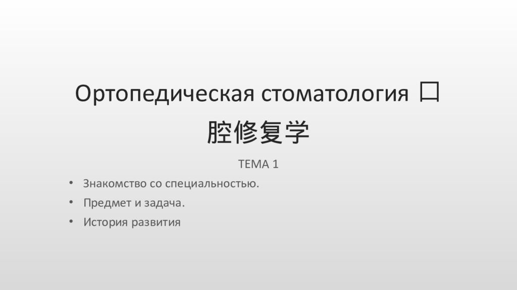 Первый слайд презентации: Ортопедическая стоматология口腔修复学