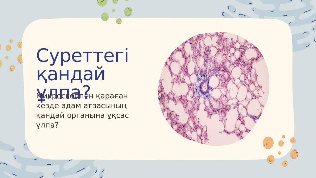 Микроскоппен қараған кезде адам ағзасының қандай органына ұқсас ұлпа? Суреттегі қандай ұлпа?