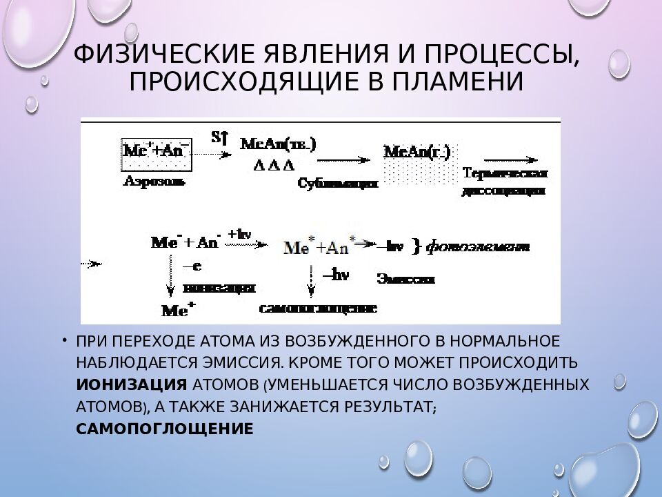 Слайд 21: Физические явления и процессы, происходящие в пламени