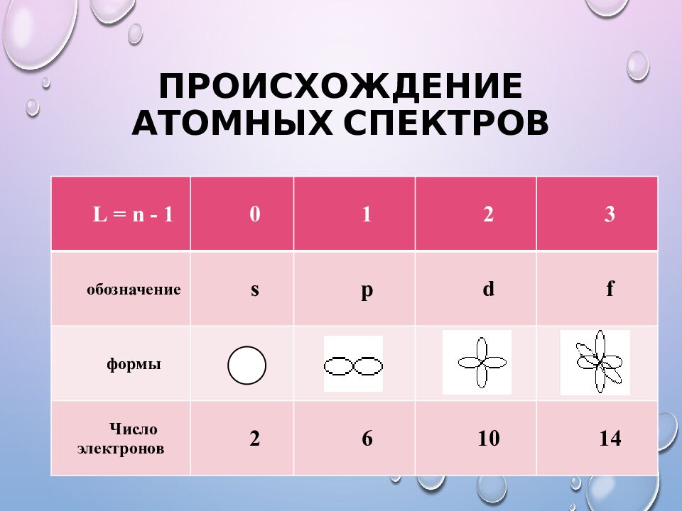 L = n - 1 0 1 2 3 обозначение s p d f формы Число электронов 2 6 10 14