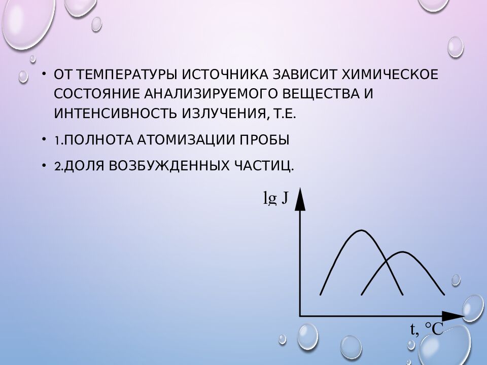 От температуры источника зависит химическое состояние анализируемого вещества и интенсивность излучения, т.е. 1.Полнота атомизации пробы 2.Доля возбужденных частиц.