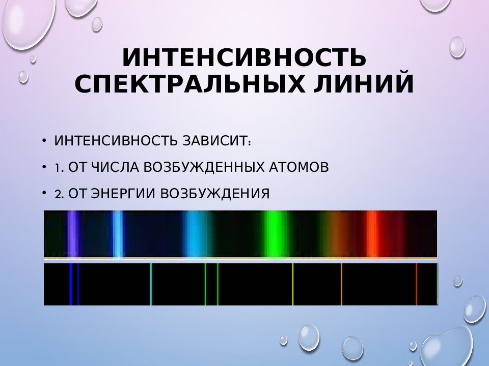 интенсивность зависит: 1. от числа возбужденных атомов 2. от энергии возбуждения
