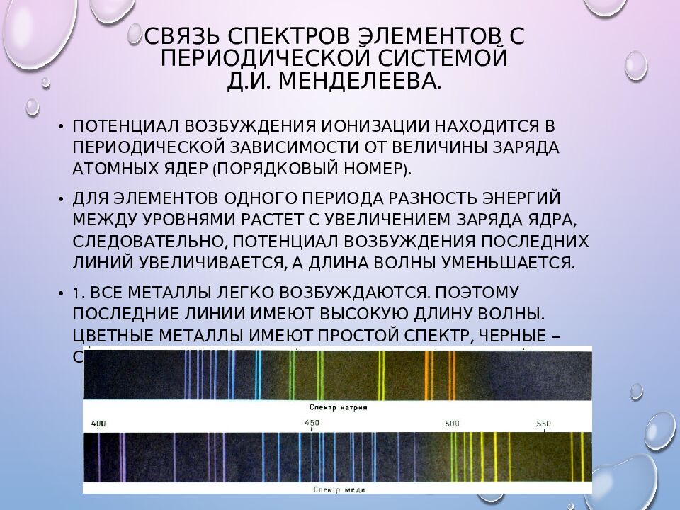Слайд 9: Связь спектров элементов с периодической системой Д.И. Менделеева