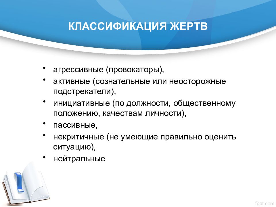 Слайд 10: КЛАССИФИКАЦИЯ ЖЕРТВ