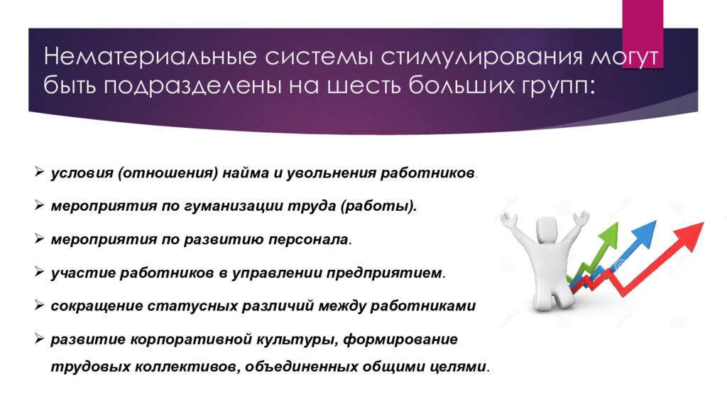 Слайд 9: Нематериальные системы стимулирования могут быть подразделены на шесть больших групп: