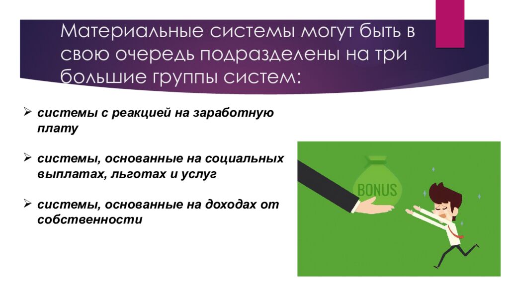 системы с реакцией на заработную плату системы, основанные на социальных выплатах, льготах и услуг системы, основанные на доходах от собственности