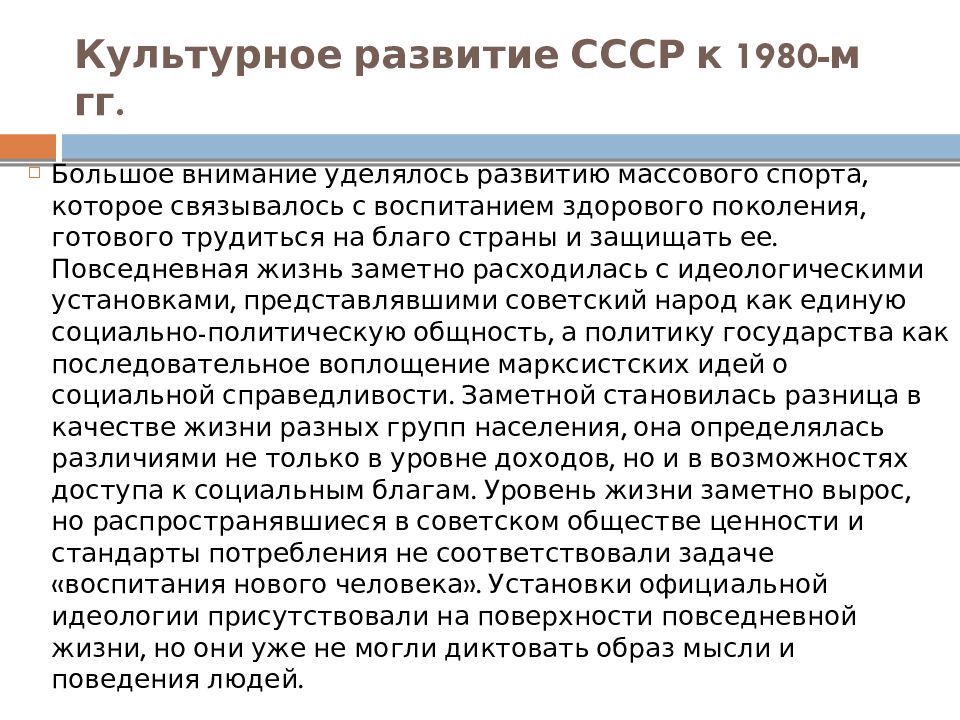 Слайд 13: Культурное развитие СССР к 1980-м гг