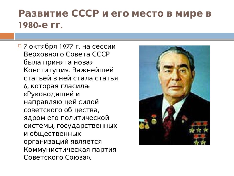 Слайд 6: Развитие СССР и его место в мире в 1980-е гг