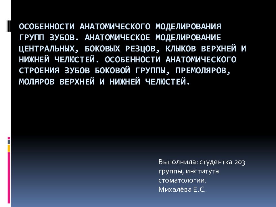 Выполнила: студентка 203 группы, института стоматологии. Михалёва Е.С.