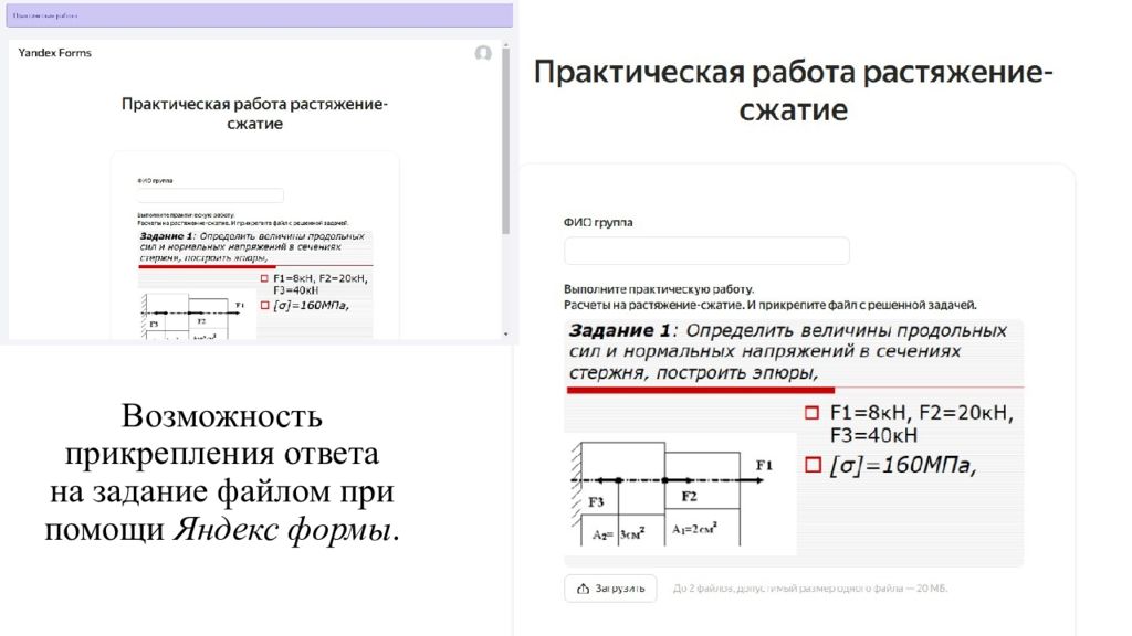 Возможность прикрепления ответа на задание файлом при помощи Яндекс формы.
