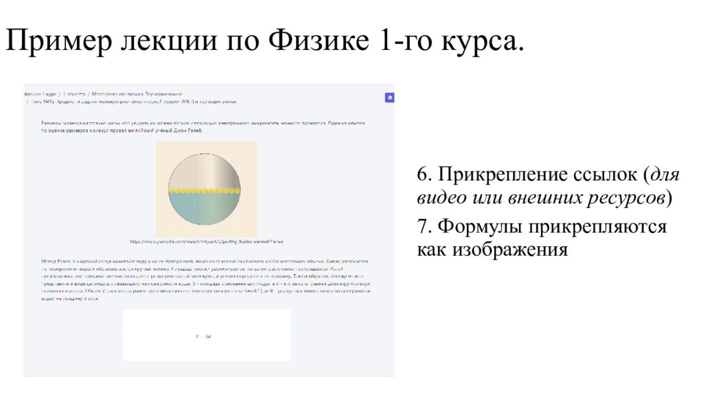 6. Прикрепление ссылок ( для видео или внешних ресурсов ) 7. Формулы прикрепляются как изображения