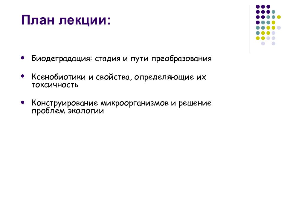 Биодеградация: стадия и пути преобразования Ксенобиотики и свойства, определяющие их токсичность Конструирование микроорганизмов и решение проблем экологии