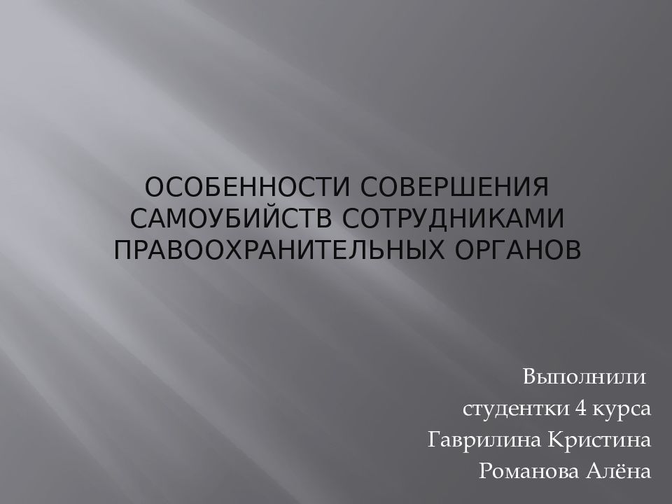 Первый слайд презентации: Особенности совершения самоубийств сотрудниками правоохранительных органов
