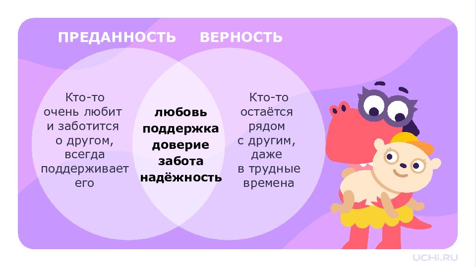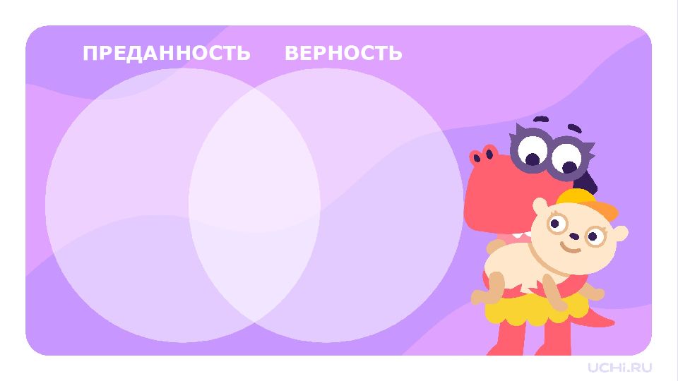 ПРЕДАННОСТЬ ВЕРНОСТЬ Кто-то остаётся рядом с другим, даже в трудные времена Кто-то очень любит и заботится о другом, всегда поддерживает его любовь поддержка доверие забота надёжность