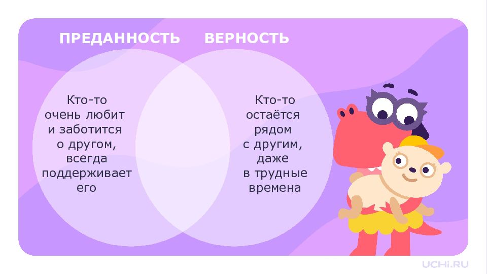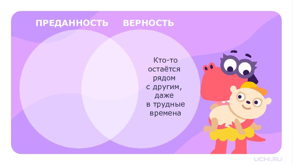 ПРЕДАННОСТЬ ВЕРНОСТЬ Кто-то остаётся рядом с другим, даже в трудные времена Кто-то очень любит и заботится о другом, всегда поддерживает его