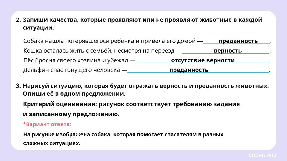 Осознание понятий верности и преданности животных 3 класс