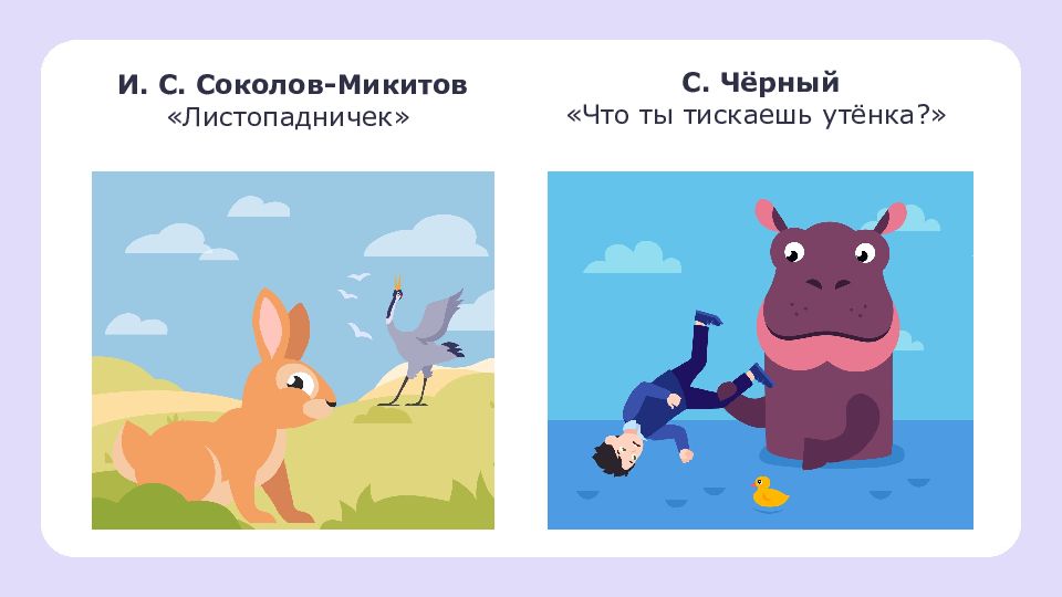И. С. Соколов-Микитов «Листопадничек» С. Чёрный «Что ты тискаешь утёнка?»