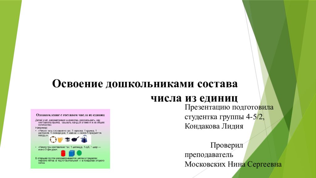 Первый слайд презентации: Освоение дошкольниками состава числа из единиц