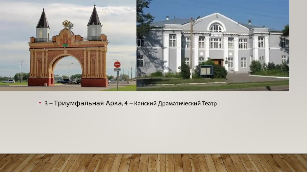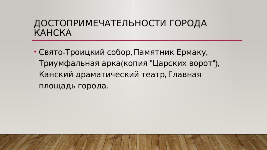 Свято-Троицкий собор, Памятник Ермаку, Триумфальная арка(копия "Царских ворот"), Канский драматический театр, Главная площадь города.