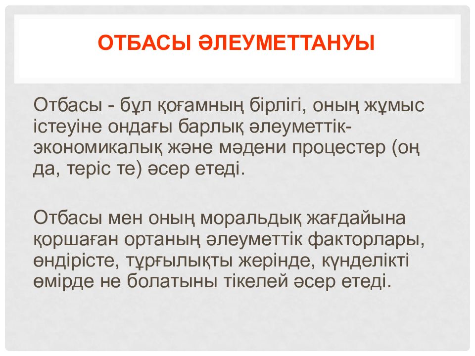 Первый слайд презентации: отбасы әлеуметтануы және қазіргі заман