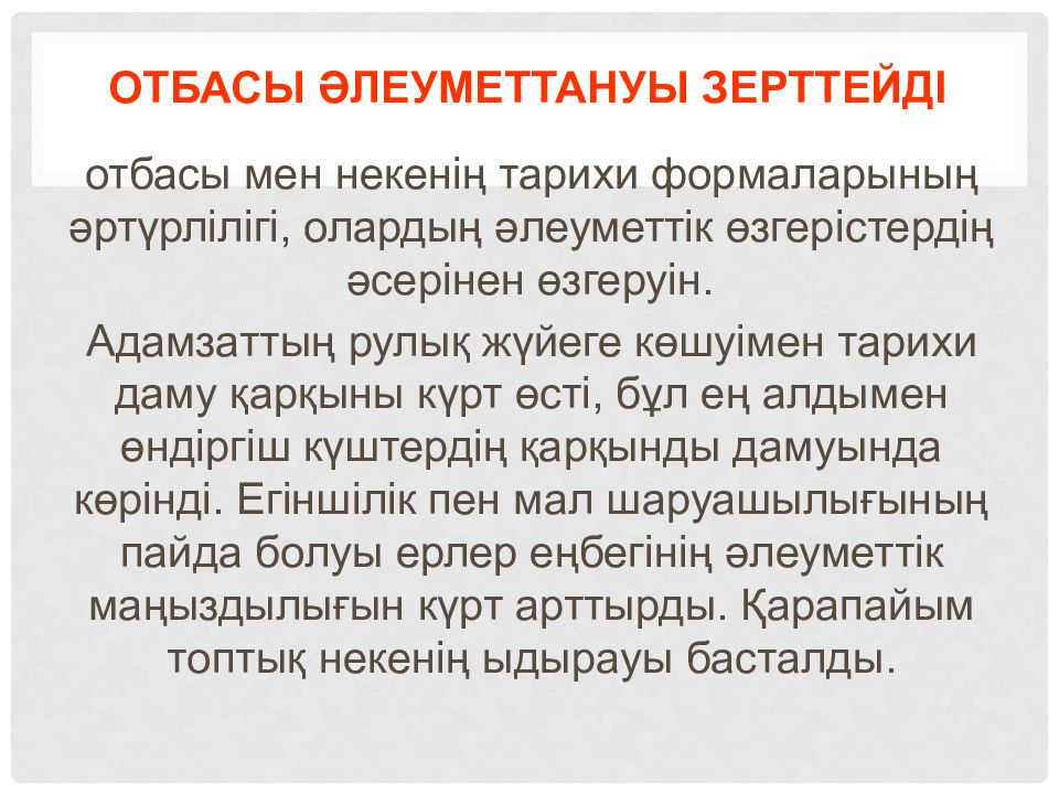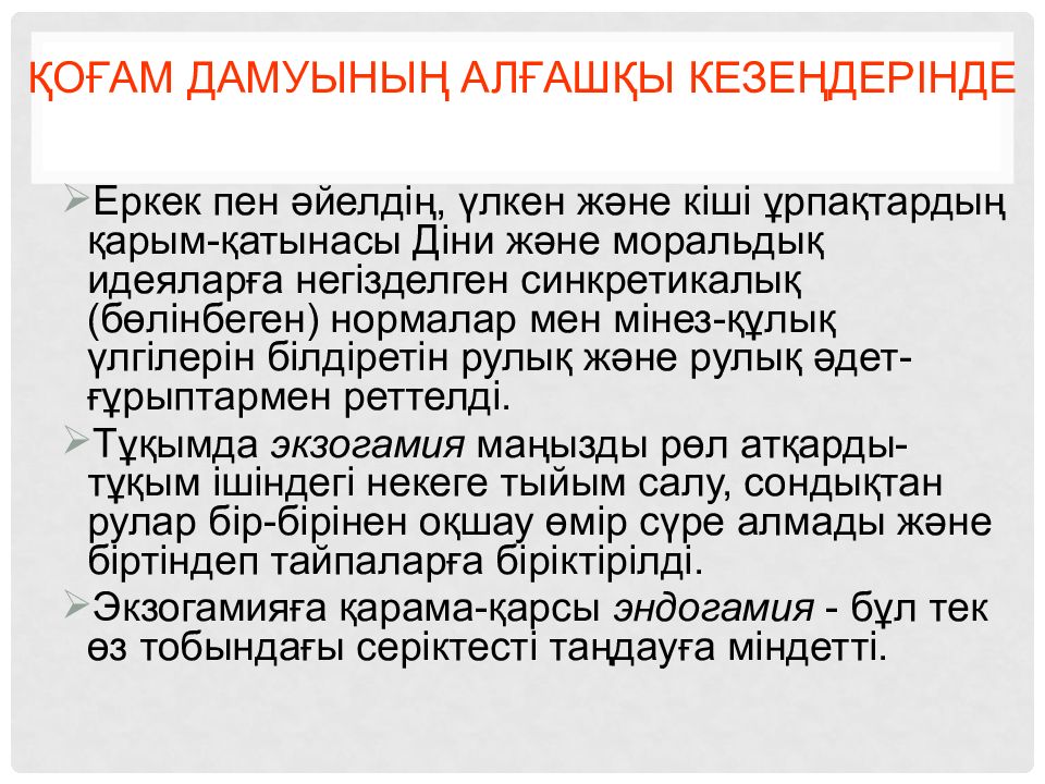 Слайд 13: Қоғам дамуының алғашқы кезеңдерінде