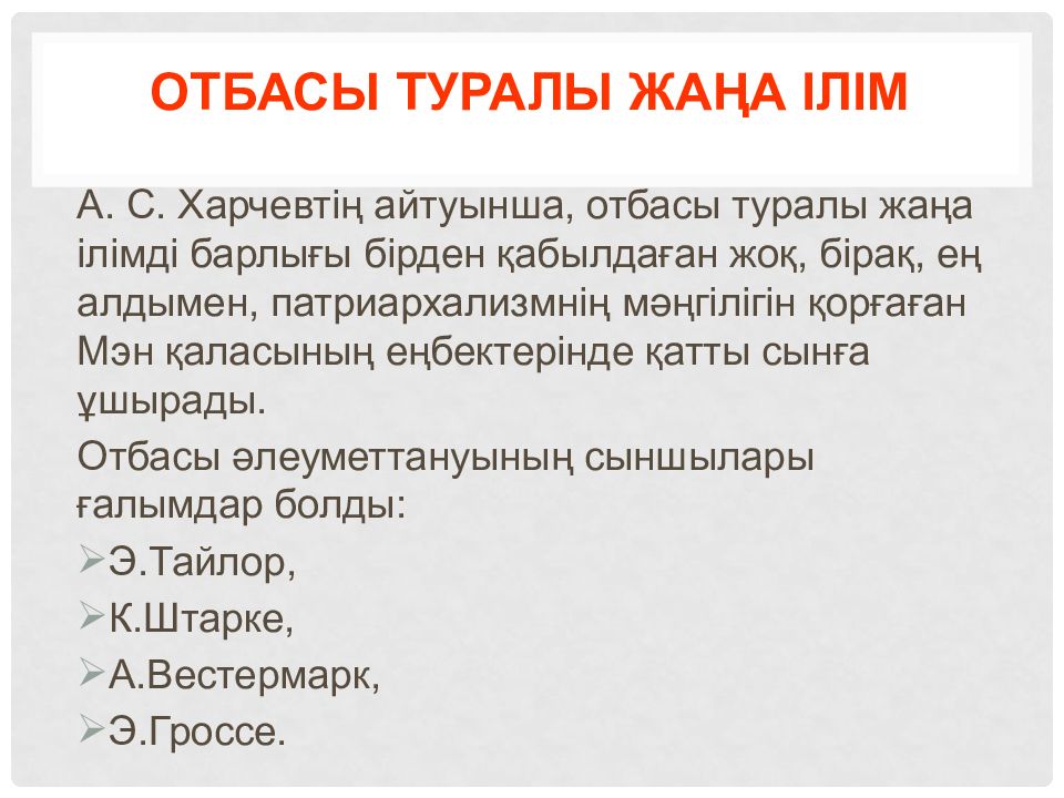 Слайд 8: Отбасы туралы жаңа ілім