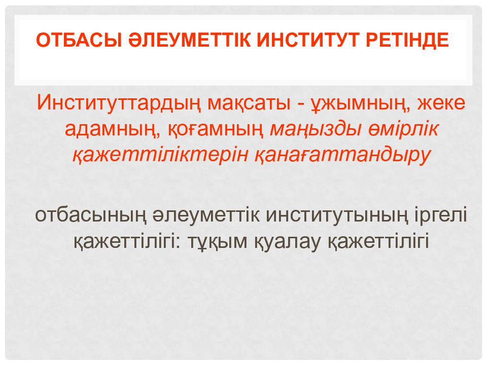 Слайд 10: Отбасы әлеуметтік институт ретінде