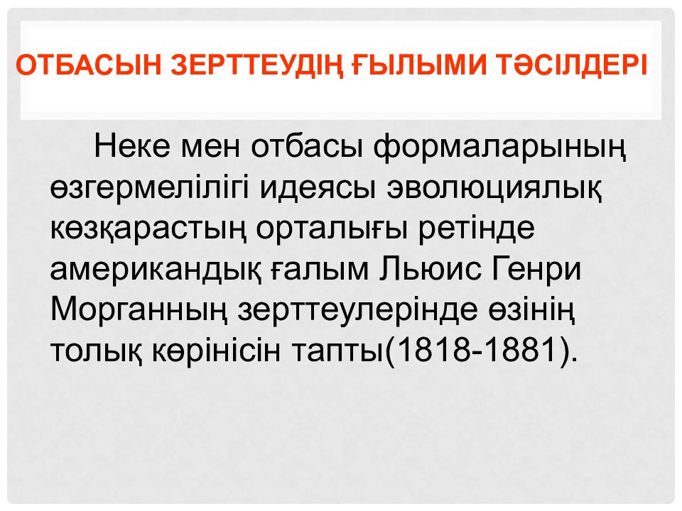 Неке мен отбасы формаларының өзгермелілігі идеясы эволюциялық көзқарастың орталығы ретінде американдық ғалым Льюис Генри Морганның зерттеулерінде өзінің толық көрінісін тапты(1818-1881).
