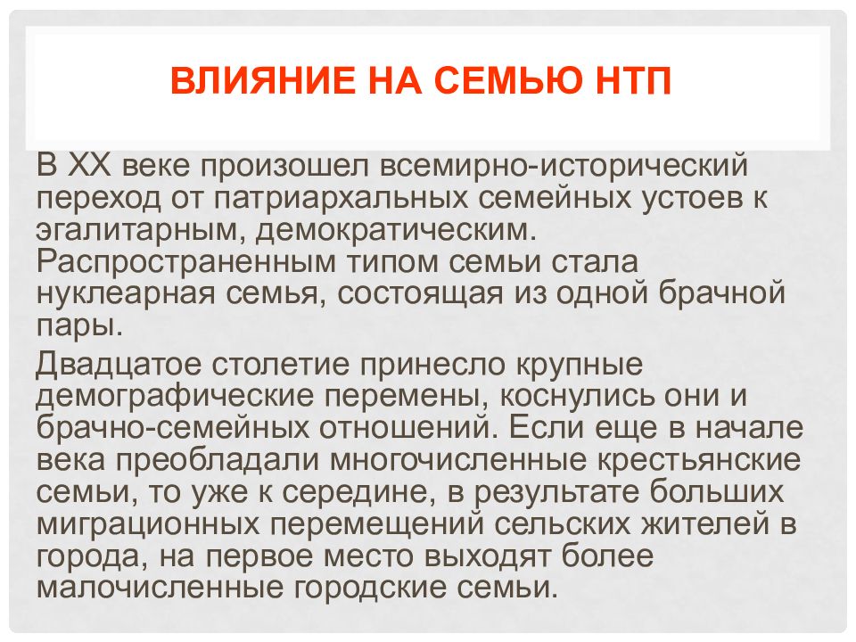 Слайд 20: Влияние на семью НТП