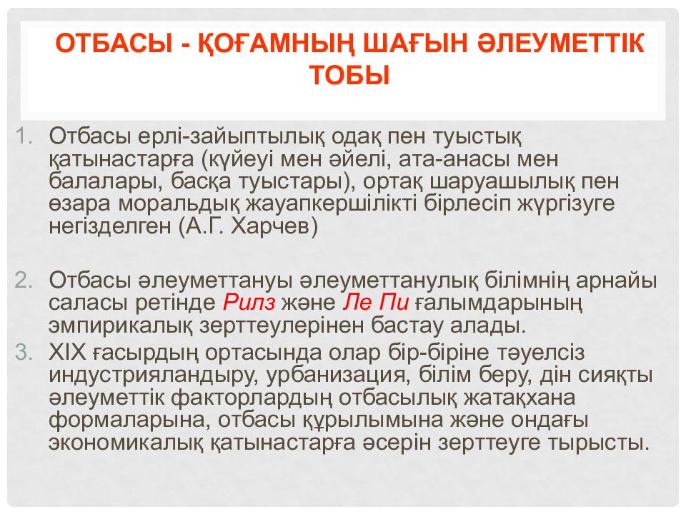 Слайд 5: отбасы әлеуметтануы