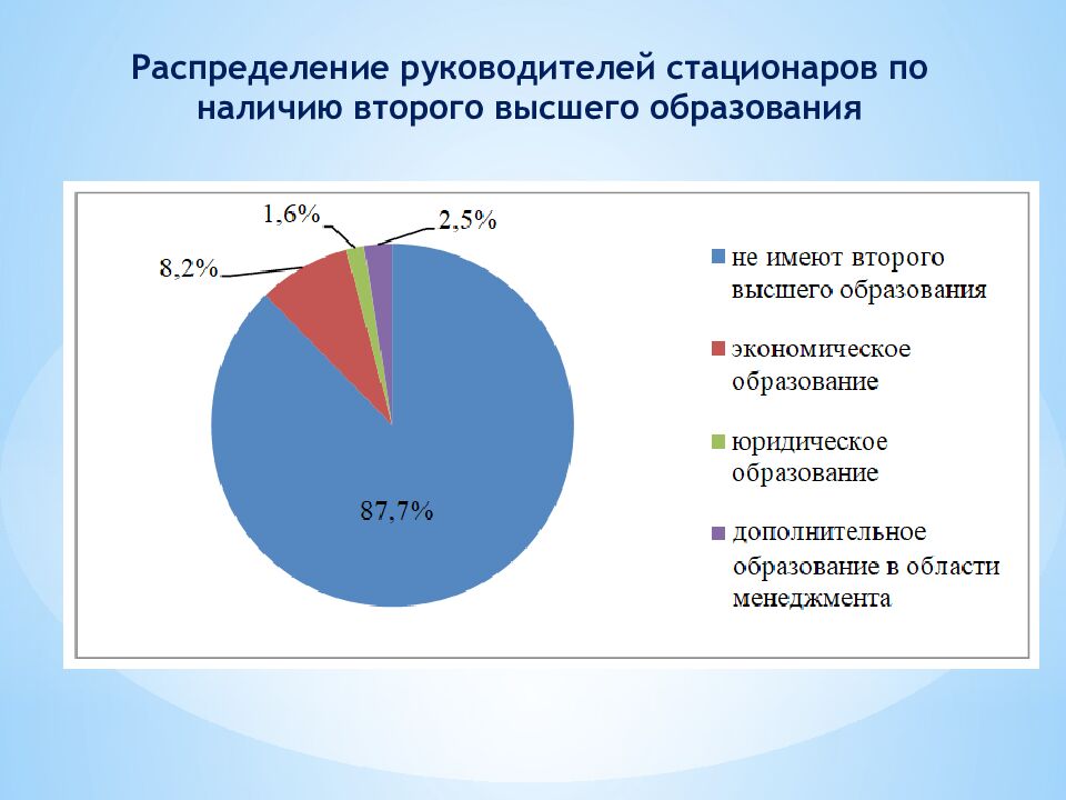 Слайд 7: Распределение руководителей стационаров по наличию второго высшего образования