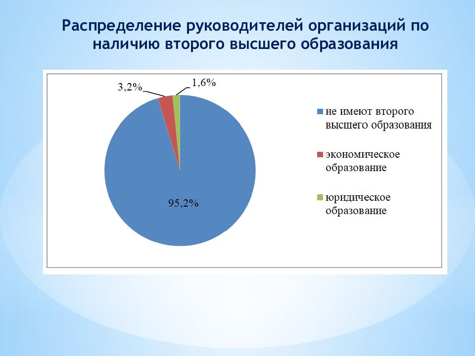 Слайд 8: Распределение руководителей организаций по наличию второго высшего образования