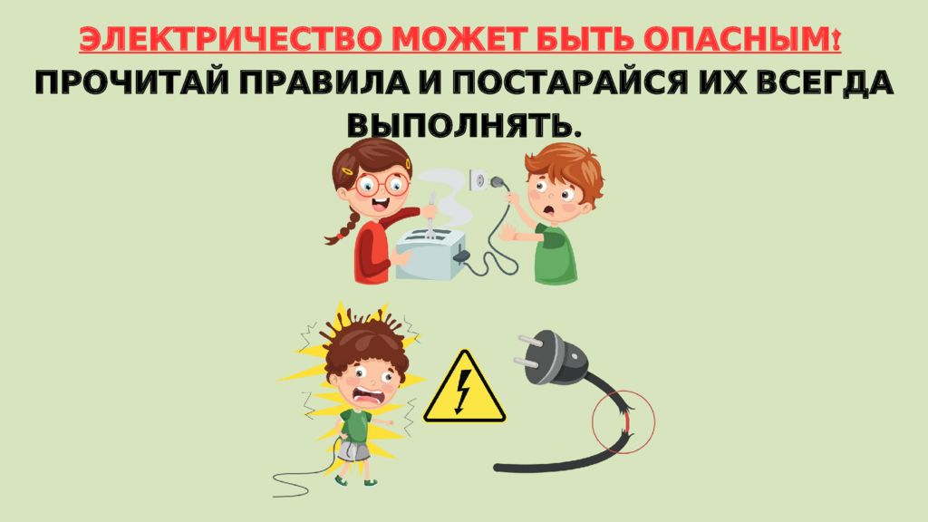 ЭЛЕКТРИЧЕСТВО МОЖЕТ БЫТЬ ОПАСНЫМ! ПРОЧИТАЙ ПРАВИЛА И ПОСТАРАЙСЯ ИХ ВСЕГДА ВЫПОЛНЯТЬ.