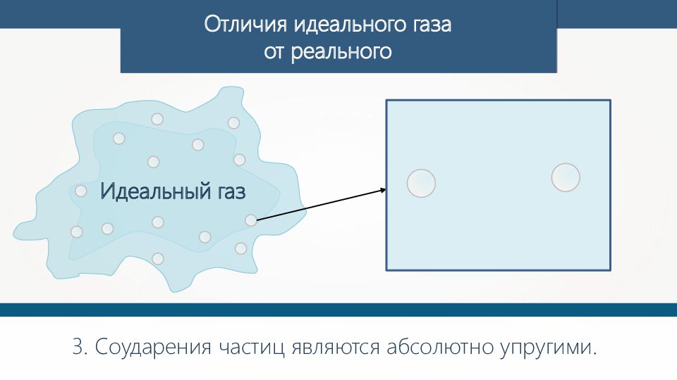 Отличия идеального газа от реального 3. Соударения частиц являются абсолютно упругими. Идеальный газ