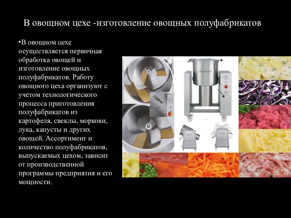 Слайд 3: В овощном цехе -изготовление овощных полуфабрикатов