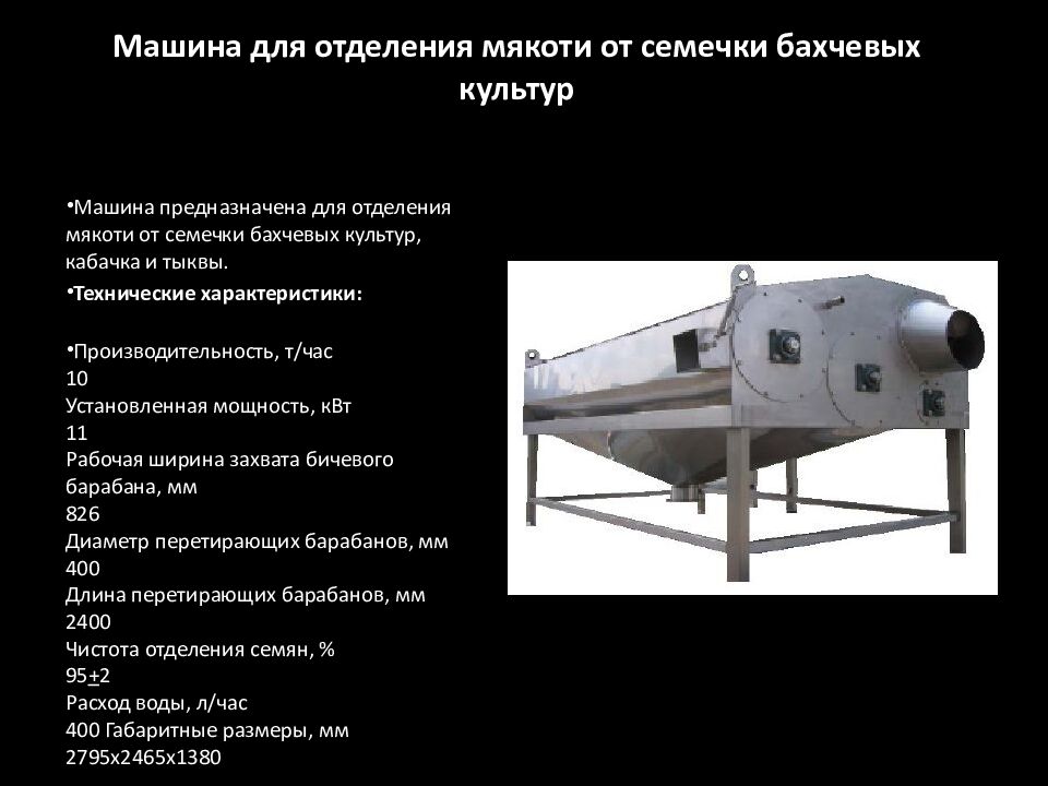 Слайд 10: Машина для отделения мякоти от семечки бахчевых культур