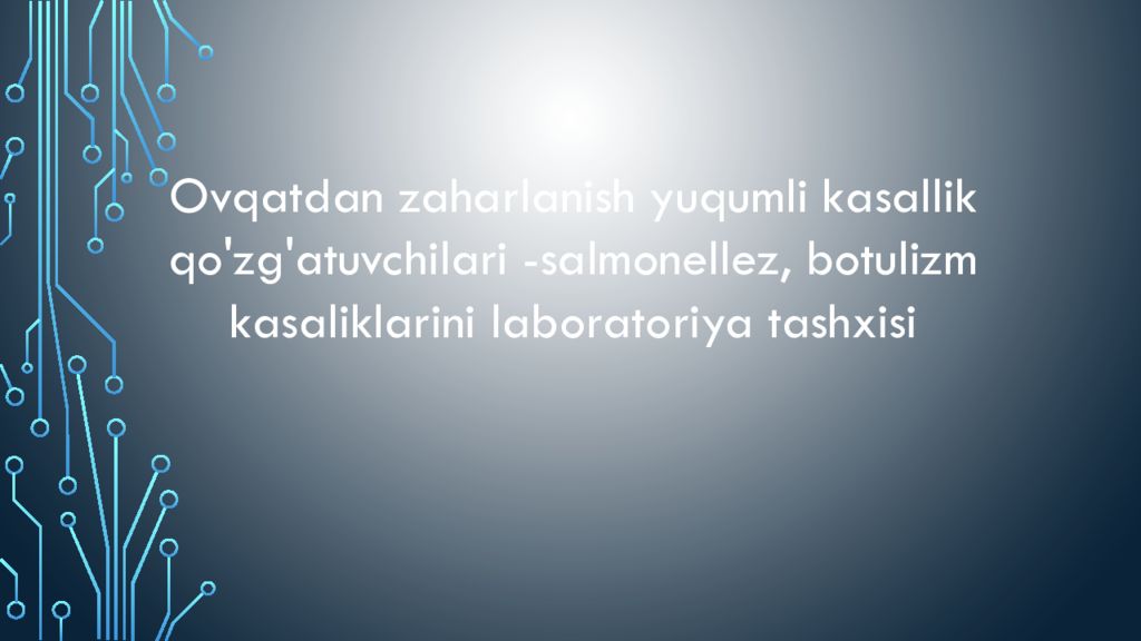 Ovqatdan zaharlanish yuqumli kasallik qo'zg'atuvchilari - salmonellez, botulizm kasaliklarini laboratoriya tashxisi
