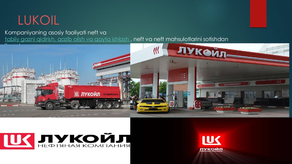 Kompaniyaning asosiy faoliyati neft va tabiiy gazni qidirish, qazib olish va qayta ishlash, neft va neft mahsulotlarini sotishdan iborat.