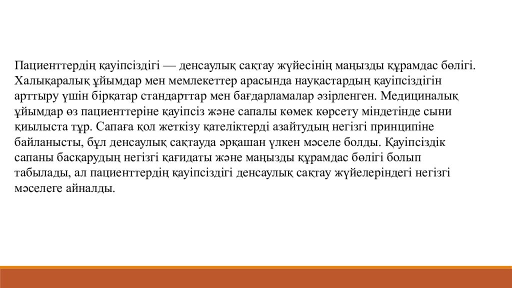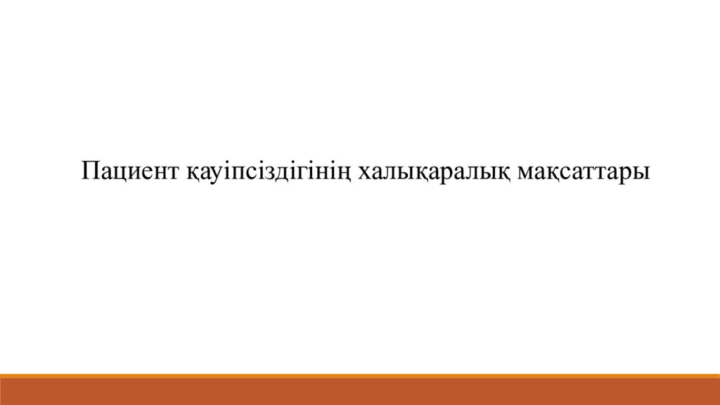 Последний слайд презентации: Пациент қауіпсіздігінің халықаралық мақсаттары