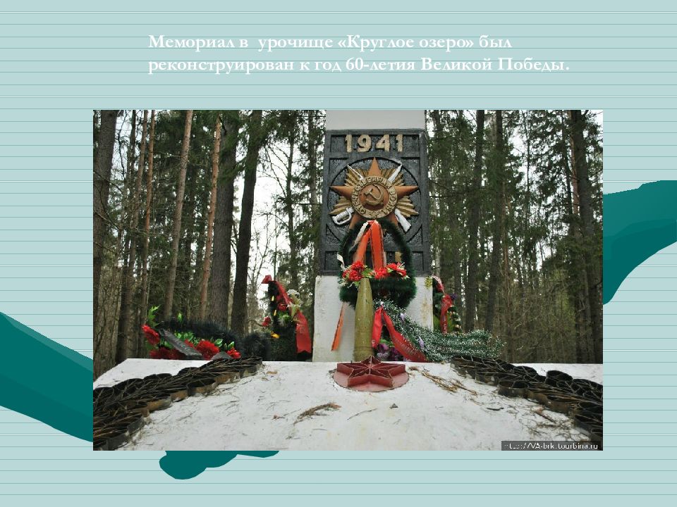 Мемориал в урочище «Круглое озеро» был реконструирован к год 60-летия Великой Победы.