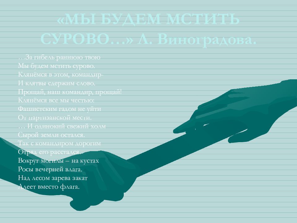 Слайд 19: МЫ БУДЕМ МСТИТЬ СУРОВО…» Л. Виноградова