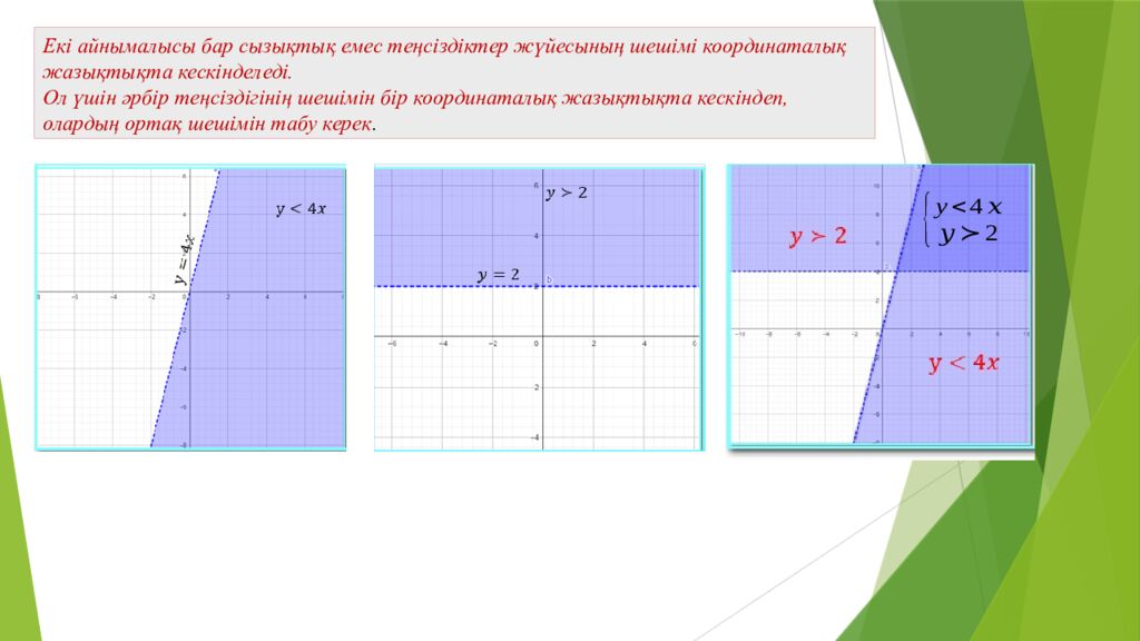 теңсіздіктер жүйесінің шешімі болатын нүктелер жиынын координаталық жазықтықта кескіндеңіз. Мысал: