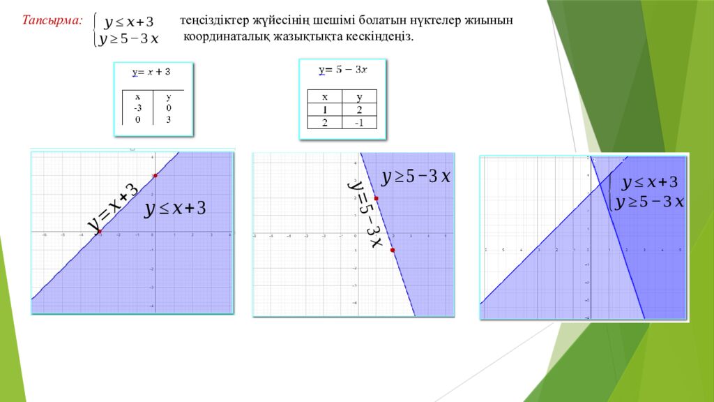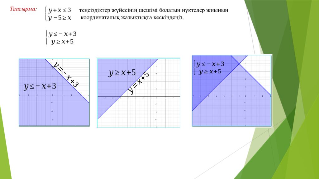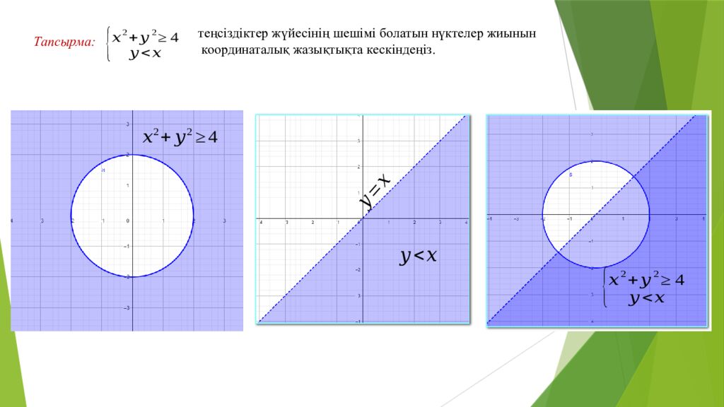 теңсіздіктер жүйесінің шешімі болатын нүктелер жиынын координаталық жазықтықта кескіндеңіз. Тапсырма:
