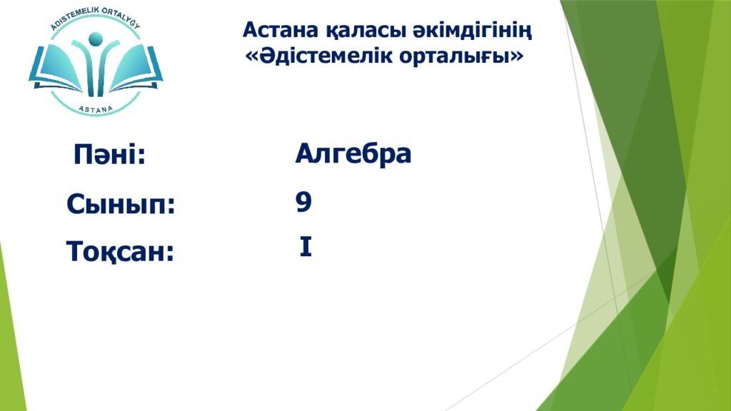 Пәні : Сынып : Тоқсан : Алгебра 9 I Астана қаласы әкімдігінің « Әдістемелік орталығы »
