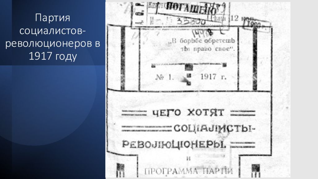 Первый слайд презентации: Партия социалистов-революционеров в 1917 году