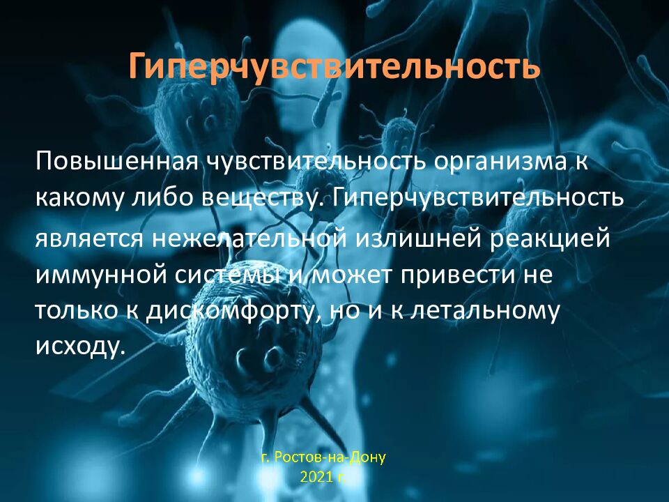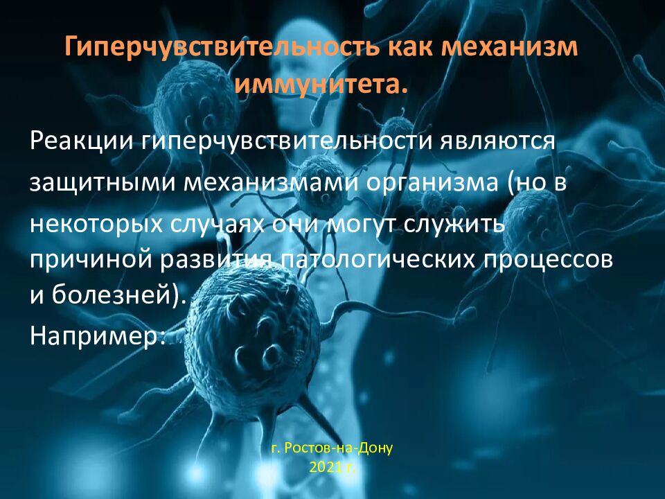 Реакции гиперчувствительности являются защитными механизмами организма (но в некоторых случаях они могут служить причиной развития патологических процессов и болезней). Например : г. Ростов-на-Дону 2021 г.